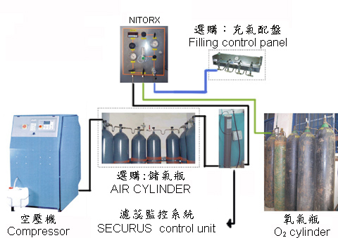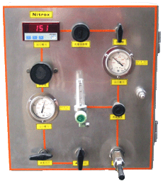1.止迴閥防止氣體溢流 2.易辨識流程色碼確保正確操作 3.數位壓力顯示欲充填氧壓 , 高精度 , 無視覺誤差 , 無需年度校正 4.閥、管及面盤箱皆為不鏽鋼 , 安全 , 耐蝕 5.自動洩壓之撥桿充氣閥 , 操作便捷