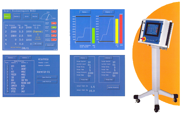 的操作,壓力階及成型檔名可透過呼出顯示小鍵盤儲存。自動清洗點的設定也可編程寫入,